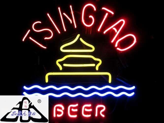検索語:ネオン看板 ガラスネオン TSINGTAO BEER 青島ビール チンタオ 中華料理 中華居酒屋 ラーメン 餃子 アジアンバル ビールバー 波 パゴダ 楼閣 赤文字 青波 黄ライン ウィンドウサイン 店舗用 インテリア 撮影背景 イベント