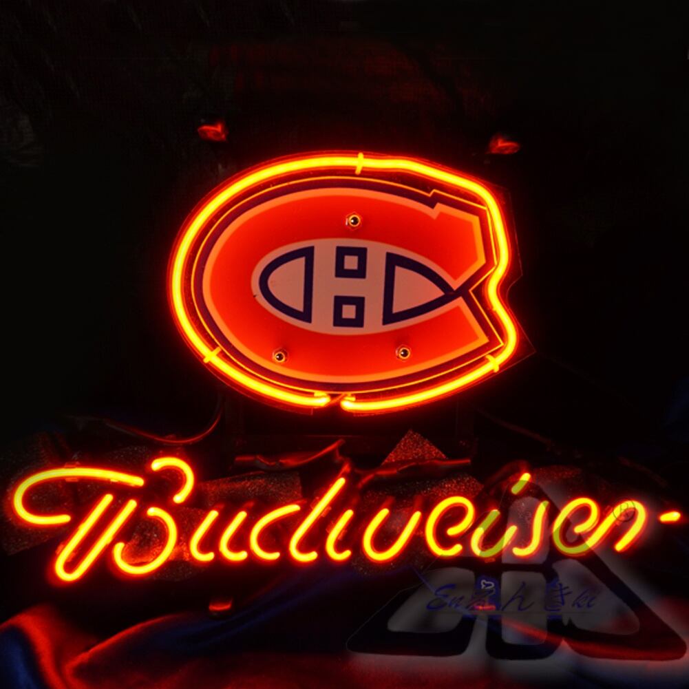 Montreal Canadiens風ネオンライト Cロゴホッケーチームモチーフ Budweiserロゴ付き NHL装飾照明 ガレージバー用アメリカン看板 インテリアウォールライト