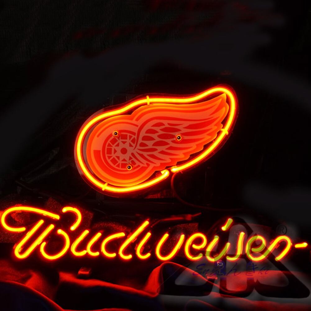Detroit Red Wingsをモチーフにした羽根付きホイールデザインが印象的なネオンライト
